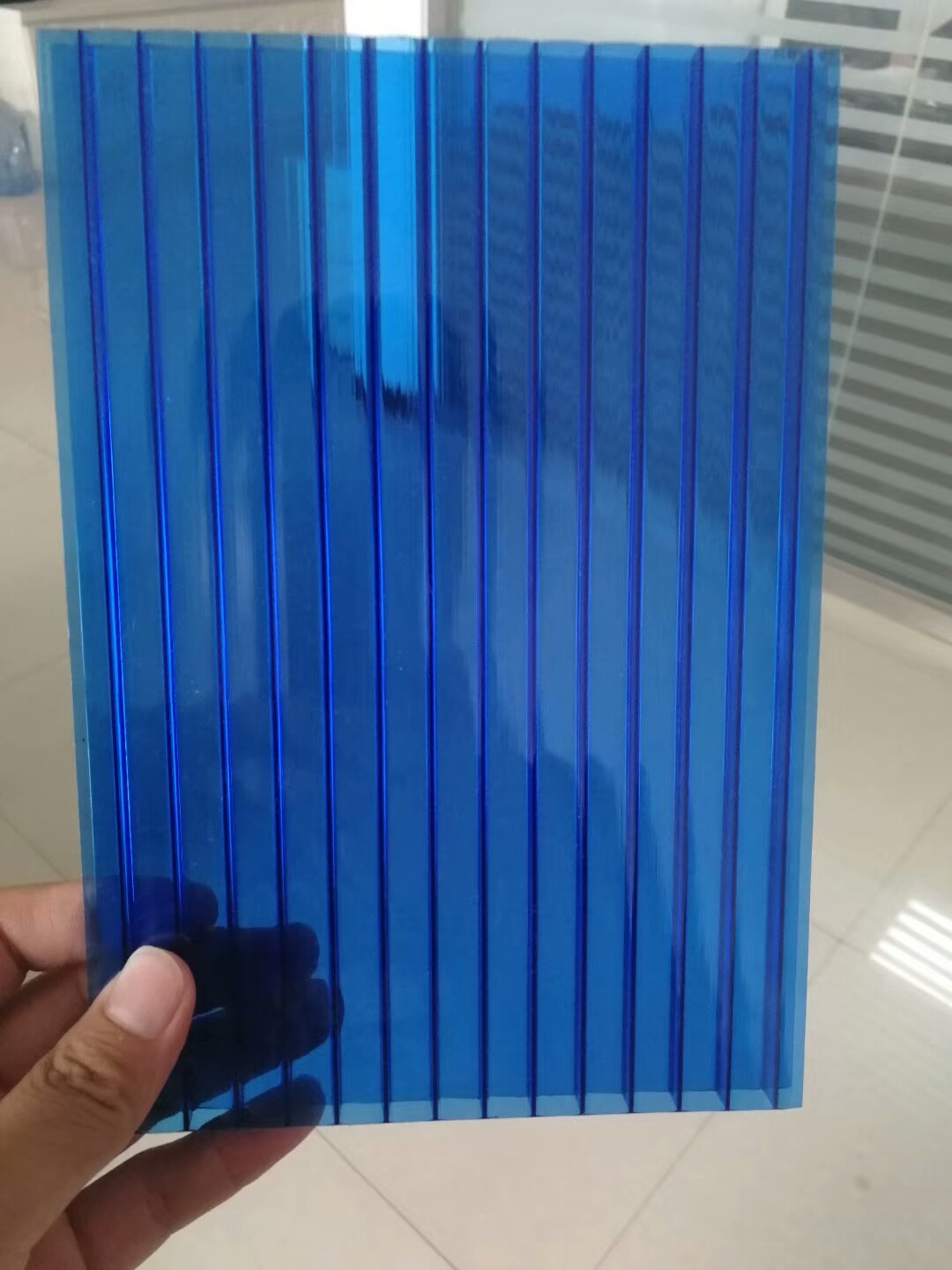 Blue polycarbonate hollow sheet combines practical performance with aesthetic decoration, providing effective sun protection and heat insulation while adding a beautiful appearance to buildings. The soft blue tint filters strong sunlight, reduces glare, and creates a comfortable indoor light environment.