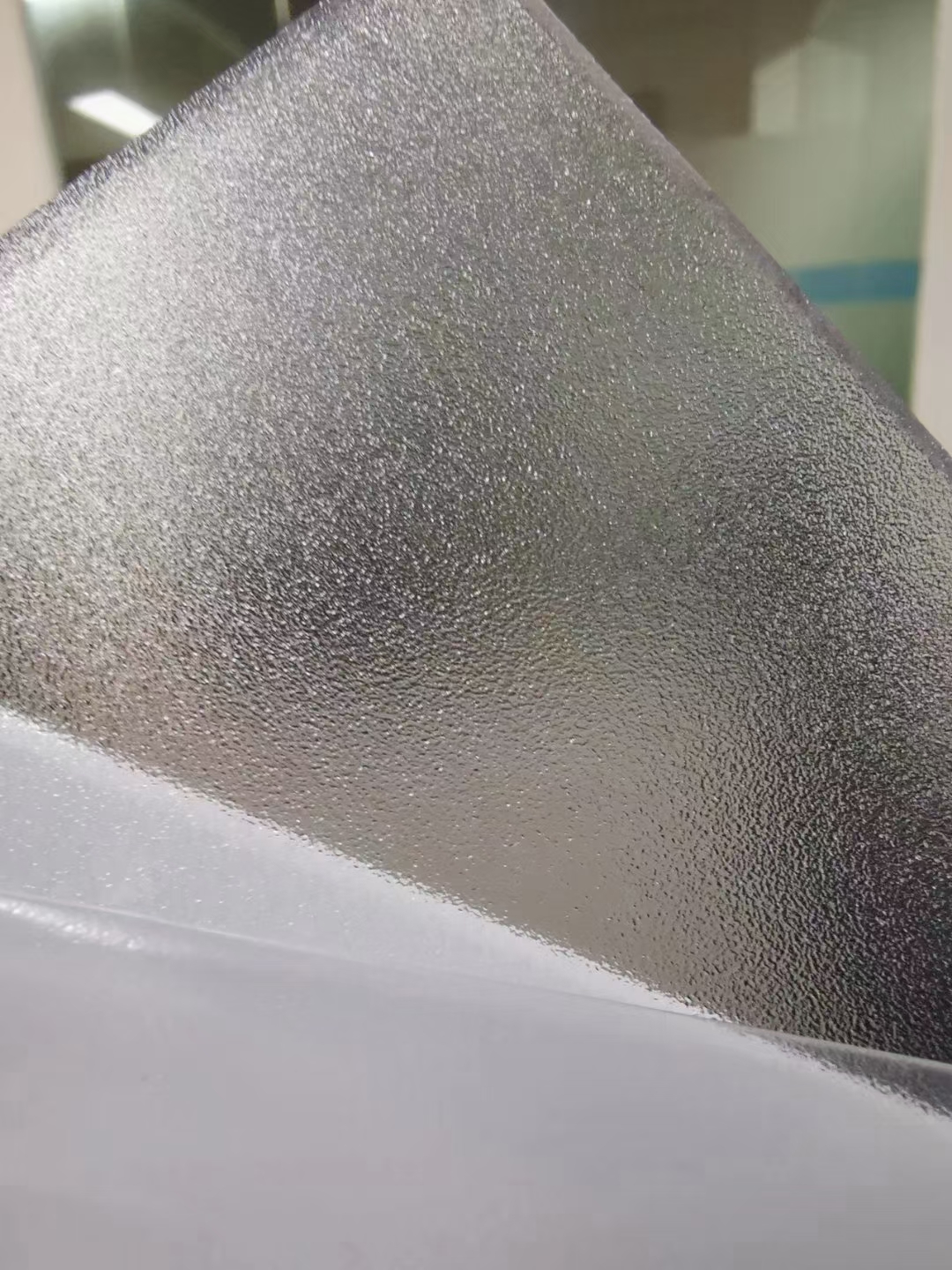 Frosted polycarbonate solid sheet features a frosted surface that provides privacy protection while transmitting soft, diffused light. It avoids glare and ensures a comfortable visual environment, widely used for office partitions, bathroom screens, meeting room dividers, lighting covers, and decorative panels.